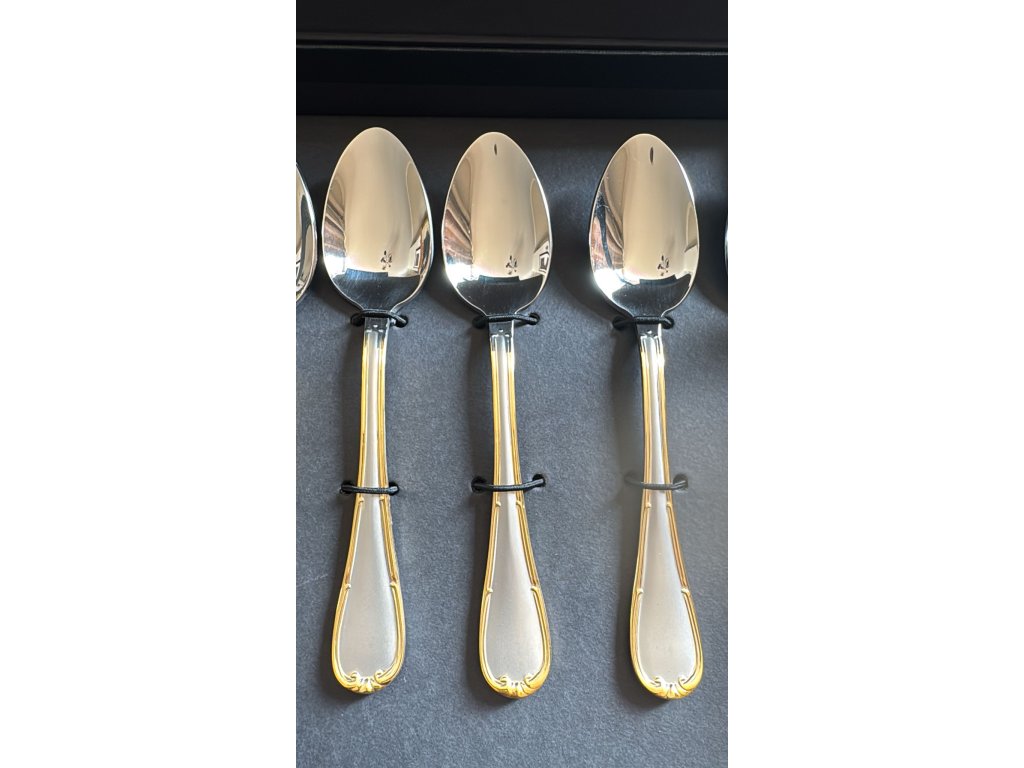 Italská značka Mepra přináší kolekci Raffaello Bordo Oro, která propojuje decentní matnou eleganci s jemným luxusem zlacených detailů. Tato sada šesti dezertních/předkrmových lžic se stane ozdobou vašeho stolu i originálním dárkem.