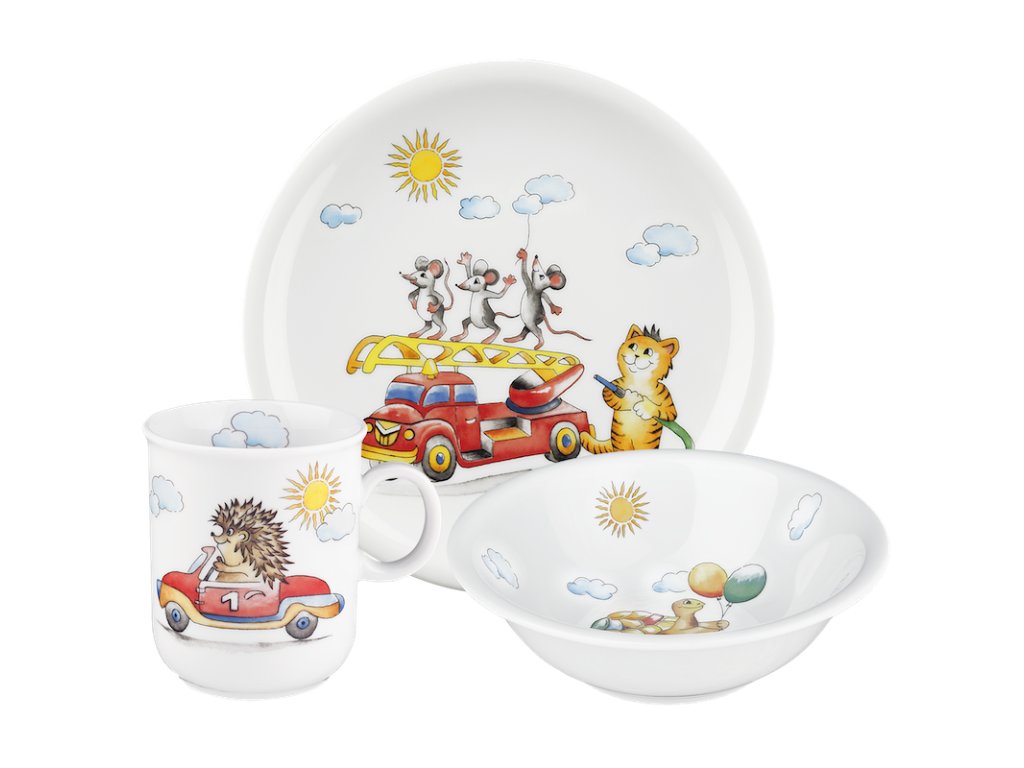 Sada dětského porcelánu s motivy pestrobarevných zvířátek, které vykouzlí úsměv na tváři nejen dětí.