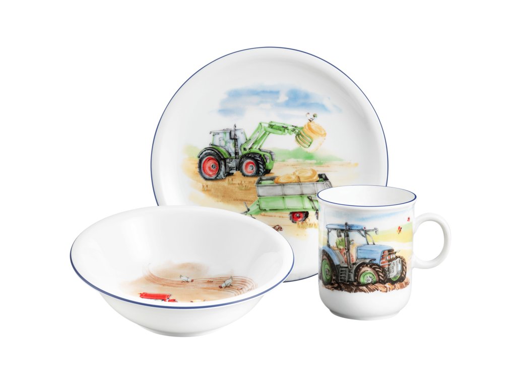 Sada dětského porcelánu s motivy traktoru, které vykouzlí úsměv na tváři nejen dětí.