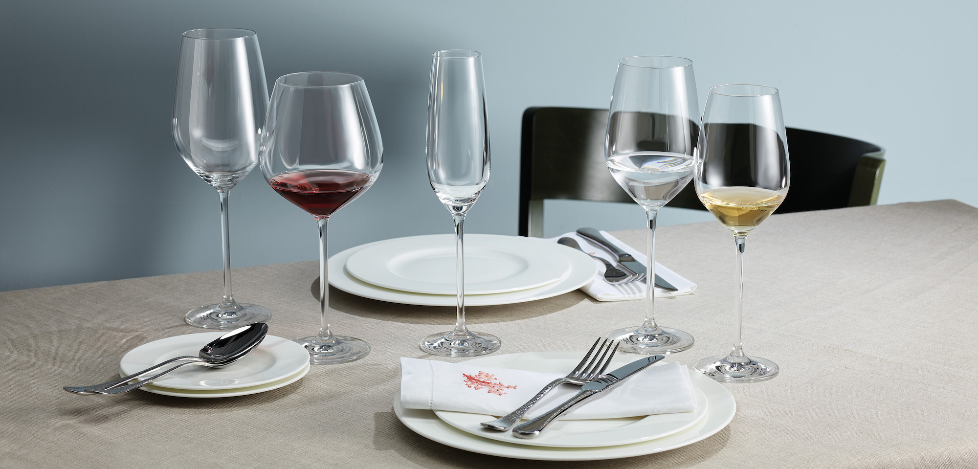 • Různé velikosti: Sklenice na burgundské a červené víno, bílé víno, vodu a sekt