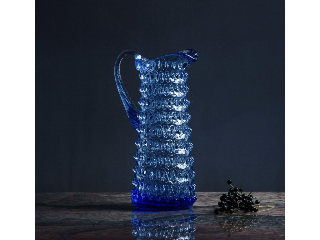 Oživte svůj stůl ručně vyráběným džbánem Polka Dot ve světle modrébarvě. Tento jedinečný džbán s objemem 1 200 ml je vyroben z bezolovnatého křišťálu a jeho originální design s nezaměnitelnou strukturou přitahuje pozornost každého, kdo ho spatří. Džbán je ideální pro servírování vody a nealkoholických nápojů a svým vzhledem dodává každé tabuli luxusní nádech.