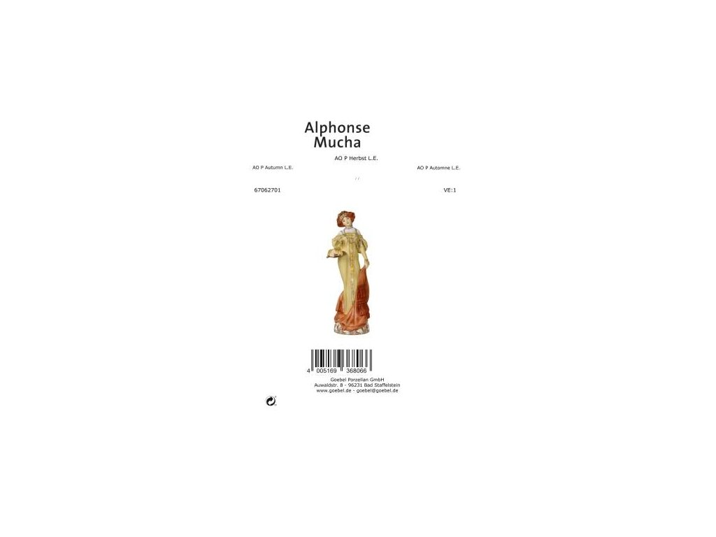 Tato socha není pouze dekorativním prvkem, ale skutečným uměleckým dílem, které přináší Muchovu vizi do třetí dimenze. Zobrazuje podzimní ženu, která je obklopena květinovými prvky symbolizujícími tuto roční dobu. Ruční aplikace zlata a precizní detaily zaručují, že každá socha je jedinečná. Socha je ideální volbou pro sběratele a milovníky secesního umění, kteří hledají něco exkluzivního do své sbírky.