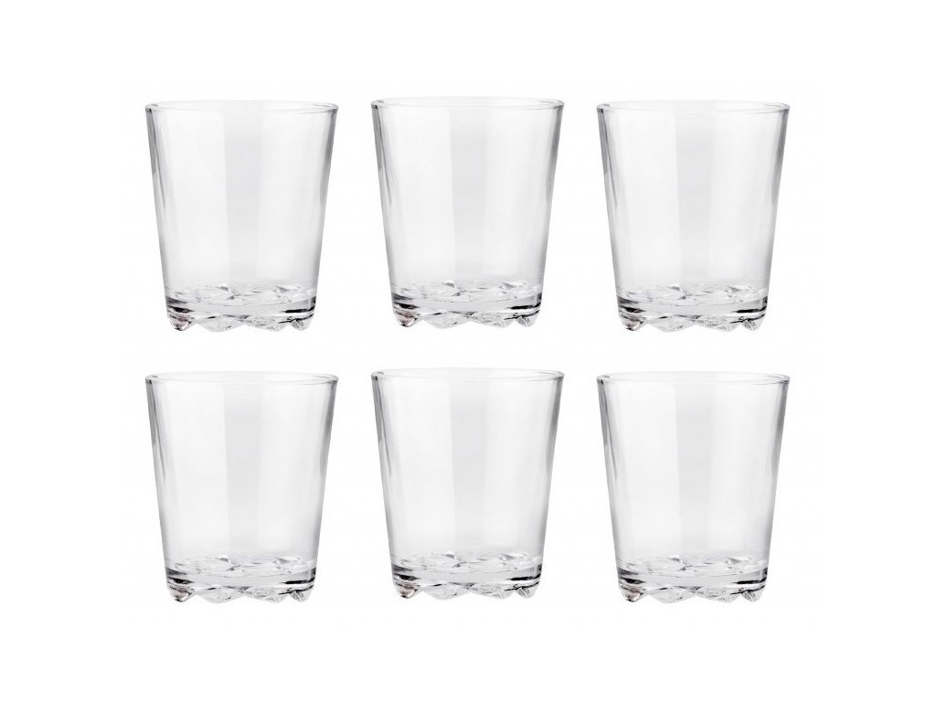 Každá sklenice je vyrobena z kvalitního strojově foukaného skla, což zajišťuje jejich odolnost a dlouhou životnost. Objem jedné sklenice je 250 ml, ideální pro vodu, džusy či whisky.