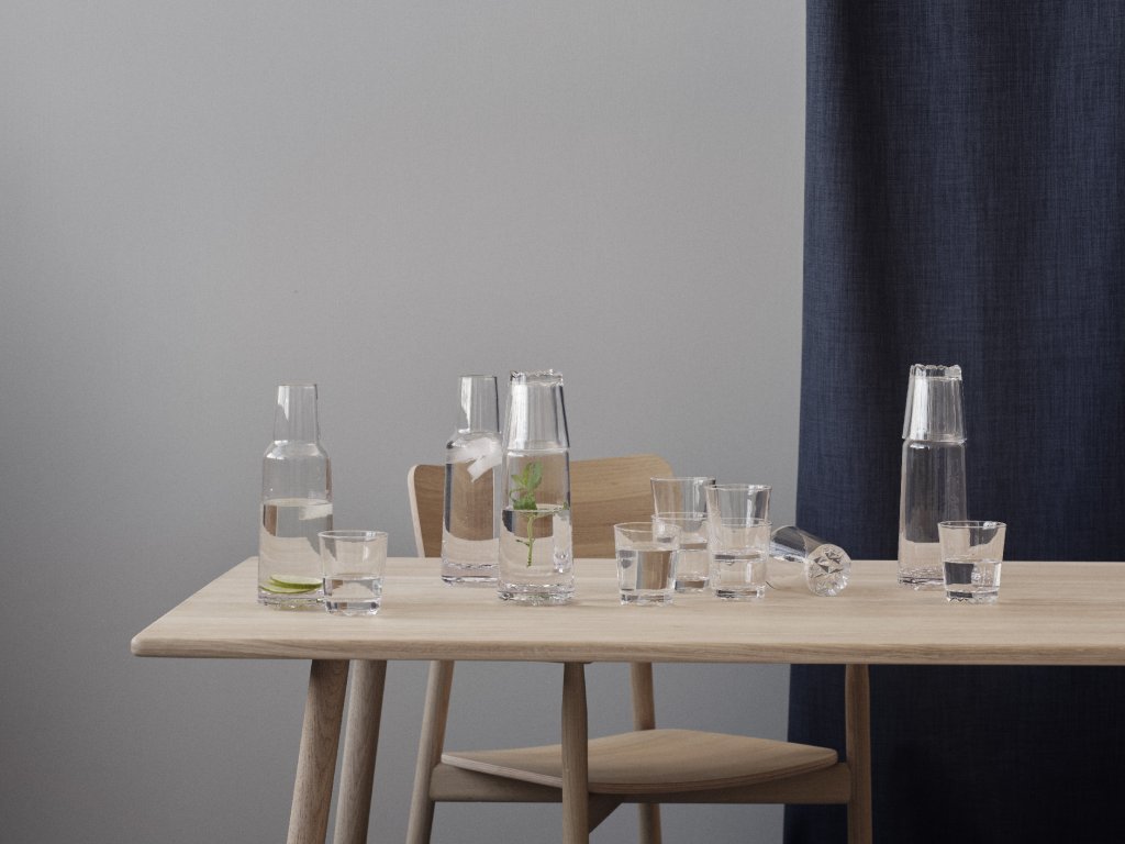 Sklenice Glacier od dánské značky Stelton vynikají jednoduchým tvarem a skulpturálním dnem, které odráží krásu severských ledovců a zimní krajiny. Design navrhl Peter Svarrer, renomovaný dánský sklářský umělec.