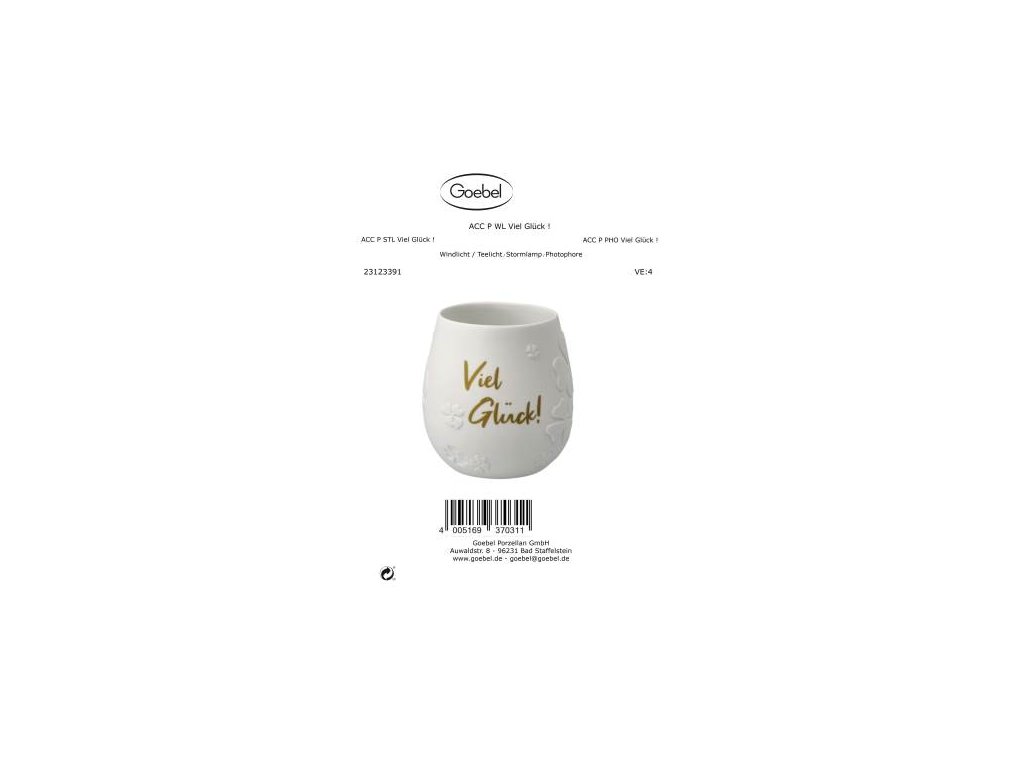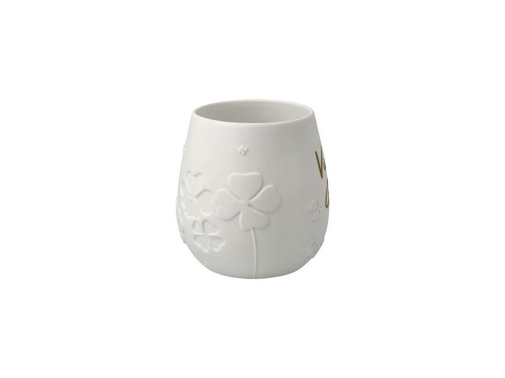 Svícen Viel Glück je jemný svícen, který přináší štěstí a kouzelnou atmosféru do každého prostoru. Vyrobený z vysoce kvalitního neglazovaného porcelánu, tento svícen je dekorován zlacením a má výjimečně jemný povrch, který se mění při zapálení čajové svíčky.