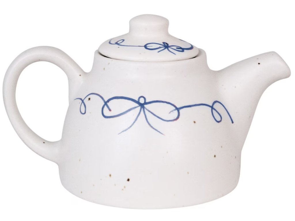 Přineste do svého stolování radost a eleganci s ručně malovanou čajovou konvicí Viola Bow Blue. Jemná modrá mašlička a výrazné puntíky na kamenině jí dodávají osobitý vintage šarm, přesto je design nadčasově severský.