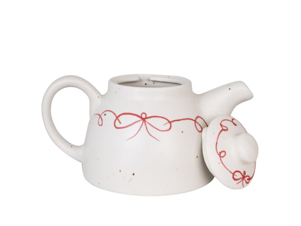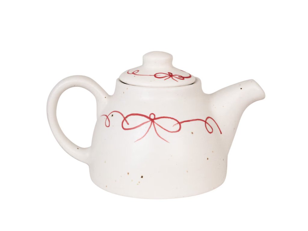 Přineste do svého stolování radost a eleganci s ručně malovanou čajovou konvicí Viola Bow Red. Jemná červená mašlička a výrazné puntíky na kamenině jí dodávají osobitý vintage šarm, přesto je design nadčasově severský.