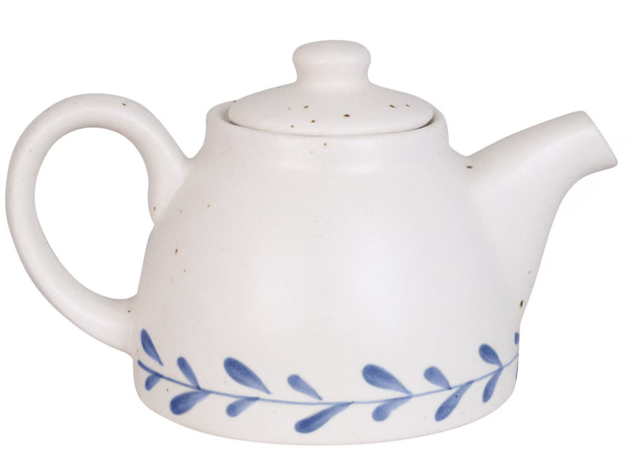 Vyzdobte svůj stůl přirozenou krásou s čajovou konvicí Viola Leaf Blue. Tato nadčasová kameninová konvice je zdobená ručně malovaným lístkovým motivem a dekorativními puntíky, které díky rozdílné výpálové teplotě získávají autentický vzhled.