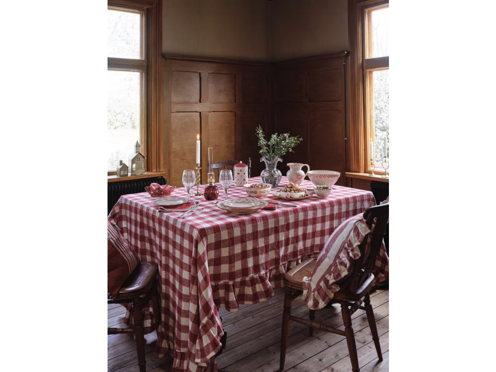 Přineste do své jídelny romantický venkovský šarm s ubrusem Ida Check v jemné červeno‑bílé kostce. Dokonale kombinuje nadčasový design s praktickou funkcí – ideální pro každodenní stolování i sváteční příležitosti. Vytvořte si doma atmosféru jako z venkovské kuchyně, ať už slavíte nebo máte běžný den.