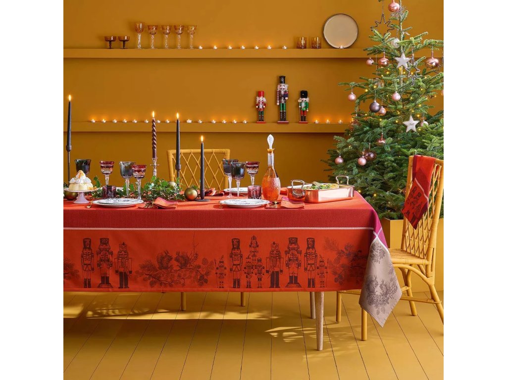 Ponořte svůj domov do kouzla Vánoc s elegantním ubrusem Casse Noisettes Rouge Festif, který vyjadřuje slavnostní atmosféru skrze detailní žakárový motiv louskáčků a cesmíny ve výrazné červené barvě. Tkaný z výjimečné 100 % extra-long staple bavlny, která je hřejivá, měkká a zároveň odolná vůči častému používání.