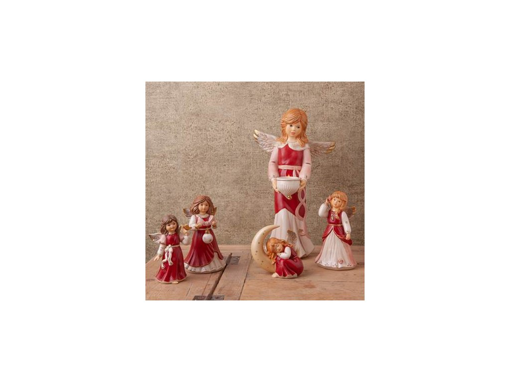 Tento okouzlující anděl v slavnostním šatu symbolizuje touhu zazářit a přinést krásu do každé vánoční chvíle. Ručně zpracovaná figurka z kvalitní kameniny je oblečena do vrstvených šatů s jemnými detaily a ve vlasech nosí svou nejvzácnější květinovou ozdobu. Elegantní dárek i nádherná dekorace pro sváteční čas.