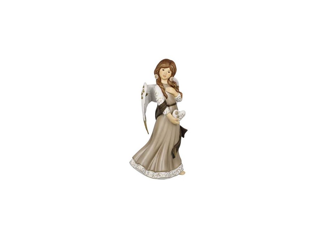 Tento nebeský posel nabízí své srdce plné lásky – opravdově, něžně a beze slov. Precizně vypracovaná soška z neglazovaného porcelánu zaujme svou elegancí a ladností. Lehkost šatů a šátku, která působí dojmem pohybu, umocňuje celkový dojem čistoty a něhy. Zlaté ornamenty zvýrazňují krásu anděla a dodávají sošce slavnostní nádech. Tento výjimečný kousek je nádherným dárkem od srdce – ideální pro významné životní okamžiky.
