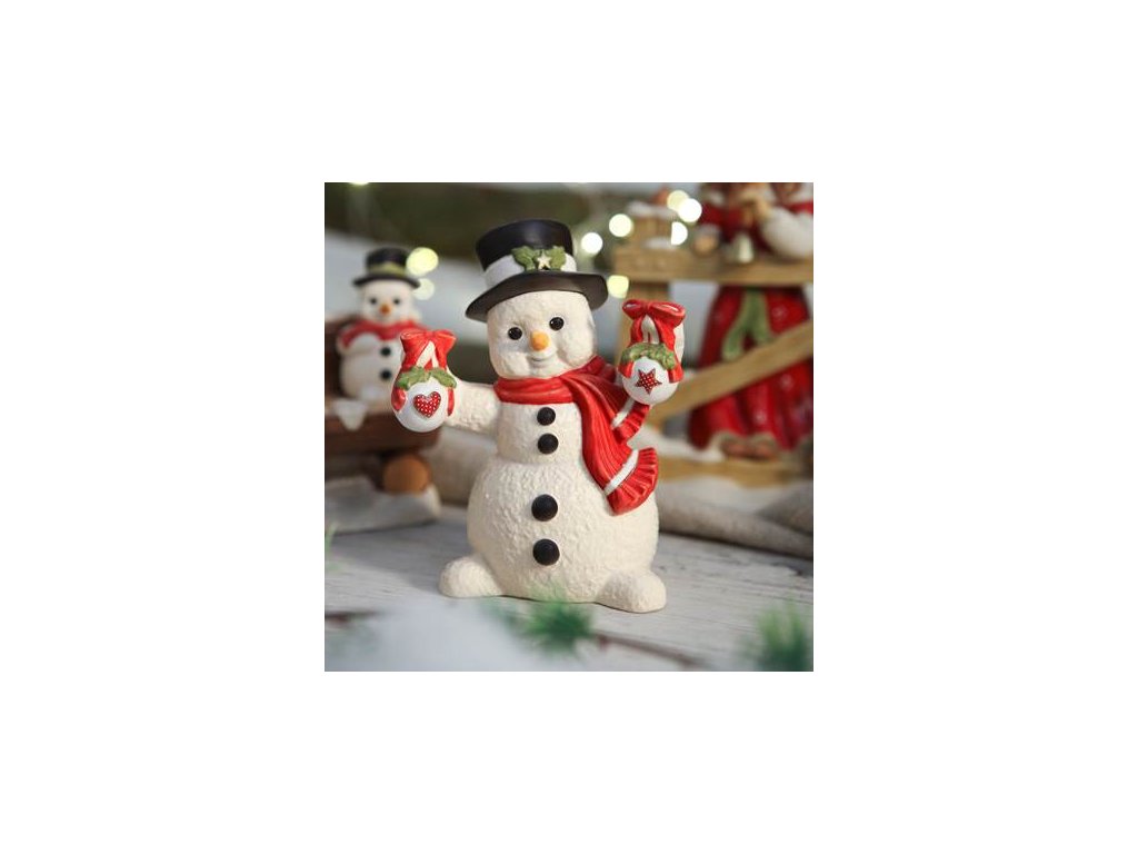 Figurka Vánoční Dekorace zobrazuje roztomilého sněhuláka, který je plný nadšení z Vánočního období. Tento sněhulák si užívá předvánoční čas, kdy se pilně věnuje zdobení svého domova. V rukou drží dvě krásné vánoční koule, které brzy umístí na své místo. S jeho pomocí se brzy celý dům a zahrada rozzáří a bude připraven na nejkrásnější období roku.