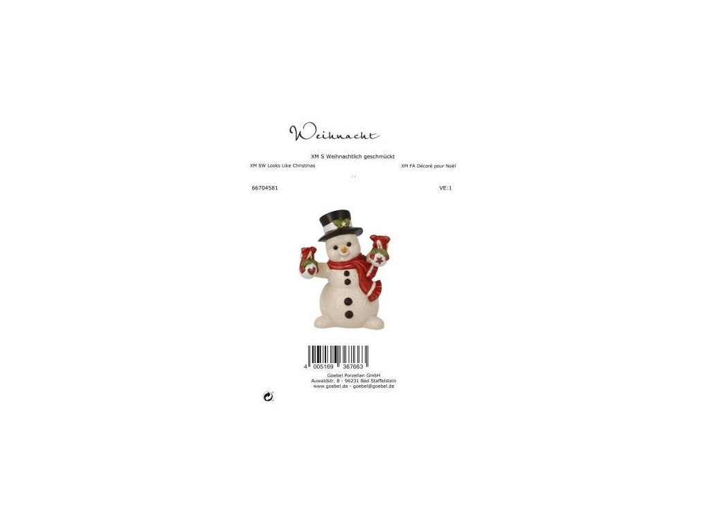 Vánoční figurka sněhulák To vypadá na Vánoce Goebel