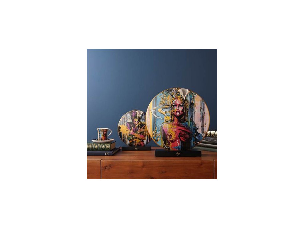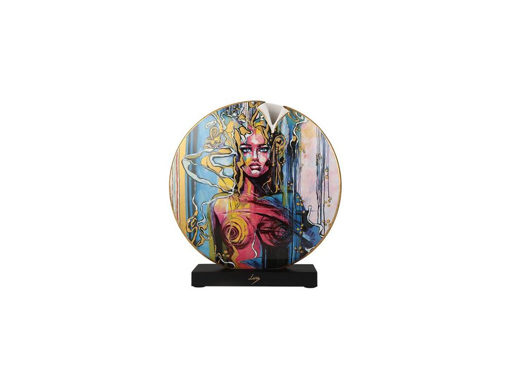 Váza Lana Frey - Freya je jedinečný designový kousek, který zobrazuje silnou a smyslnou ženskou postavu. Porcelánový disk, který se zdá vznášet na elegantní MDF základně, přináší umělecký vzhled a je výrazným doplňkem do moderních interiérů. Tato váza je součástí limitované edice 999 kusů s certifikátem, což z ní činí vysoce hodnotný sběratelský kousek.