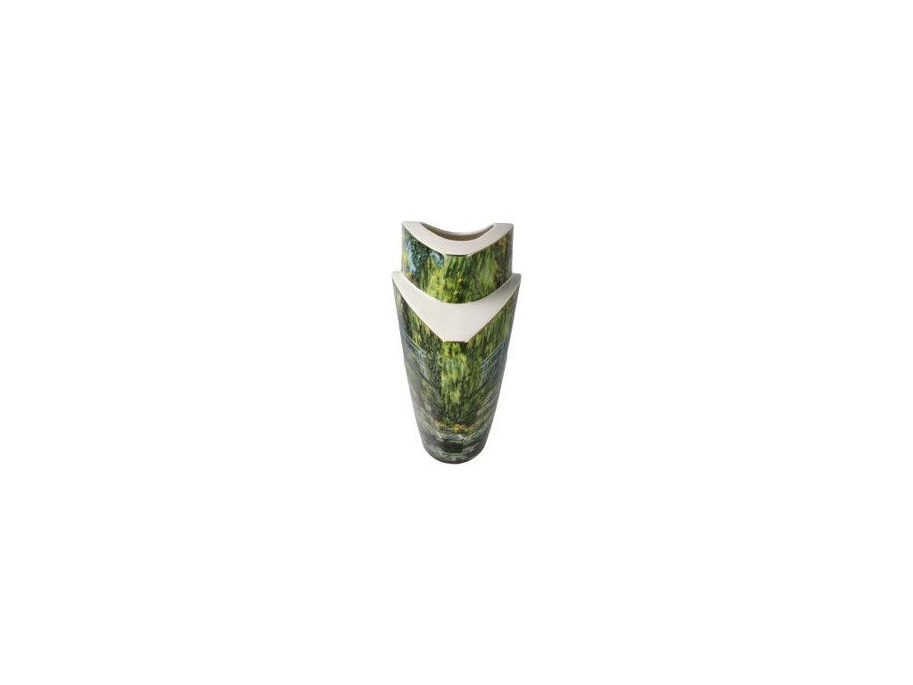 Váza Monet - Japonský most je inspirována slavným obrazem Claude Moneta, který zachycuje jeho milovanou zahradu a ikonický japonský most přes rybník s lekníny. Tento motiv se stal jedním z nejkrásnějších obrazů krajiny v období impresionismu. Váza, vyrobená z vysoce kvalitního porcelánu a zdobená skvostným pravým zlatem, dokonale ladí s tvarem mostu, což vytváří harmonickou symbiózu umění a funkce.