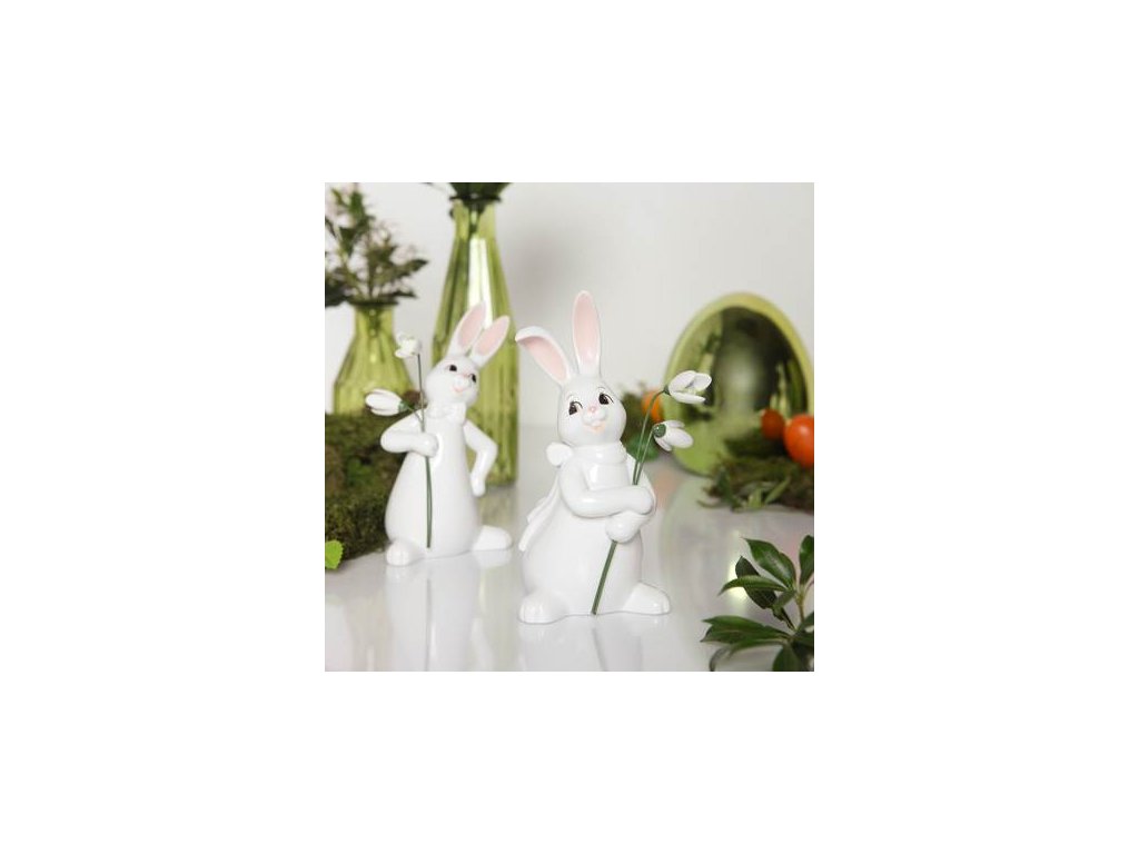 Symbolika květin: Jemné sněženky jsou symbolem příchodu jara a nového začátku. Společně s roztomilým králíčkem Snow White tvoří tuto nádhernou figurínu, která je perfektní pro jarní a velikonoční výzdobu.