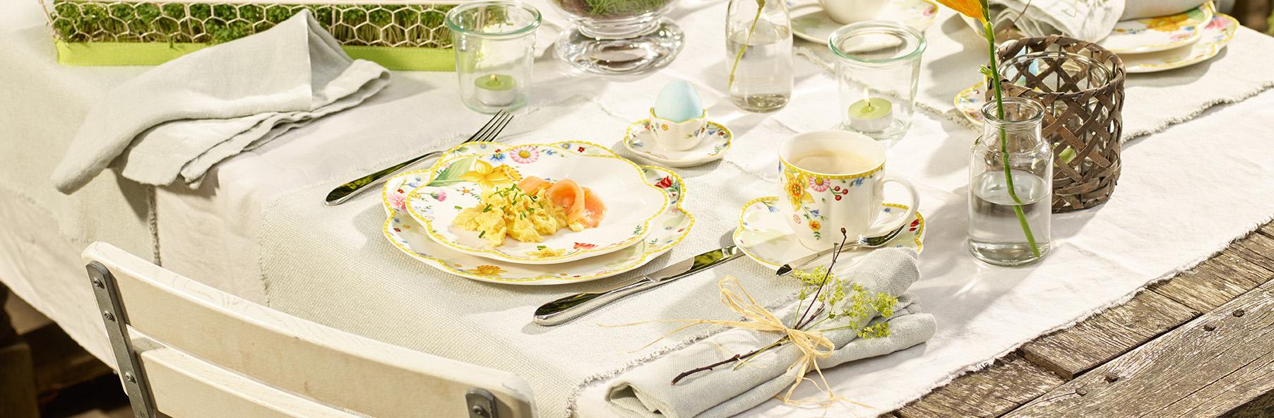 Velikonoční textil nabízí spoustu jarních motivů a kvalitní materiály - 100% prvotřídní bavlny, nebo kombinaci bavlny s polyesterem. Německý výrobce Villeroy & Boch přináší sympatické papírové ubrousky a gobelínové prostírky. Výrobci z Francie Garnier Thiebaut a Beauvillé nabízí kvalitní bavlněné utěrky, zástěry, povlaky na polštářky a ubrusy s ručním potiskem. Utěrky, zástěry vynikají savostí, ubrusy mají naopak úpravu, díky které jakékoliv zašpinění odstraníte pouze vlhkou houbičkou.