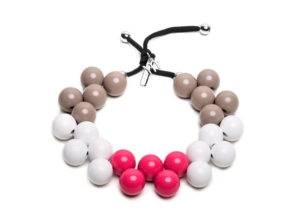Ručně vyráběný v Itálii návrhářkou šperků Mirta Bijoux, tento báječný odvážný a všestranný náhrdelník je součástí známé kolekce Ballsmania. Tento náhrdelník s dvojitou řadou ohromujících pryskyřičných korálků lze kombinovat a nosit s jinými náhrdelníky z řady, aby vytvořil odlišný vzhled a barevný kontrast. Na pružné šňůře je náhrdelník svázaný vzadu, a proto jej lze nosit několika způsoby jako středné dlouhékorále nebo jako límec upnutý kolem krku. Každá kulička ve tvaru koule měří přibližně 2,5 cm. Pokud si chcete koupit dva náhrdelníky, jednoduše vyberte jinou barvu pro vzhled a kontrast, který chcete, a hrajte při kroucení náhrdelníků dohromady v různých bodech - existuje tolik možností stylu!