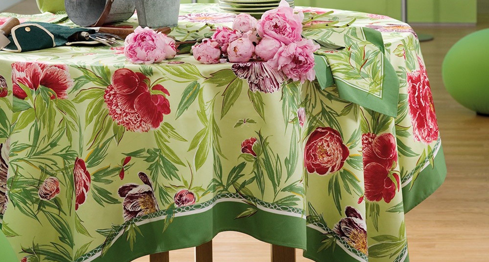 Kytice pivoněk elegantně ozdobí vaši kuchyni: ubrus Les Pivoines je vytvořen. Svěží a veselá, barvy tohoto ubrusu evokují impresionistickou malbu z 19. století.