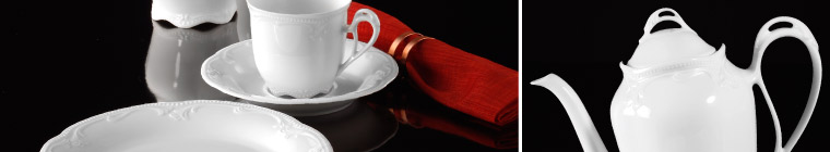 Elegantní kolekce Rubin Cream Uni vás přenese na zámek, budete si tak připadat opravdu výjimečně. Jemné lemování jemnými květy s perličkami v kombinaci s decentní krémovou bílou dodává kolekci její kouzlo. Pokud tedy dáváte přednost originálním kouskům, tato kolekce vás určitě osloví. Každé jídlo, salát nebo dezert na nich bude vypadat honosně a nádech luxusu získá i celé stolování. Oživte váš servis také kolekcí Leonore nebo Marina Aden, díky kterým se budete na společný čas u oběda i večeře skutečně těšit.