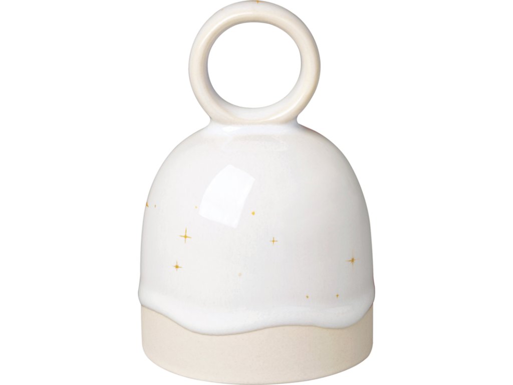 • Efektní Glazura: Speciální efektní glazura s detaily zlatých hvězd a interakcí různých materiálů dodává zvonku jedinečný vzhled, připomínající námrazu nebo sněhovou pokrývku.