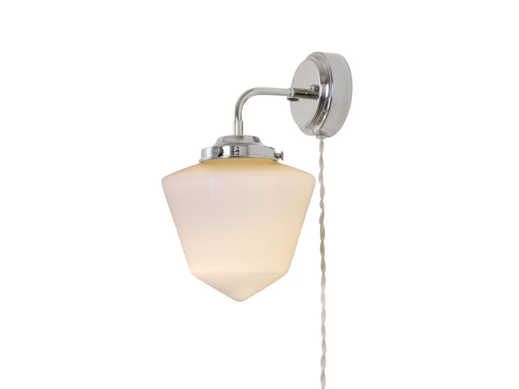 Elegantní nástěnná lampa s niklovým povrchem a krásně tvarovaným opálovým bílým sklem. Kapkovité sklo vyzařuje jemné a příjemné světlo, které spolu s držákem lampy vytváří nadčasový vzhled inspirovaný přelomem století.